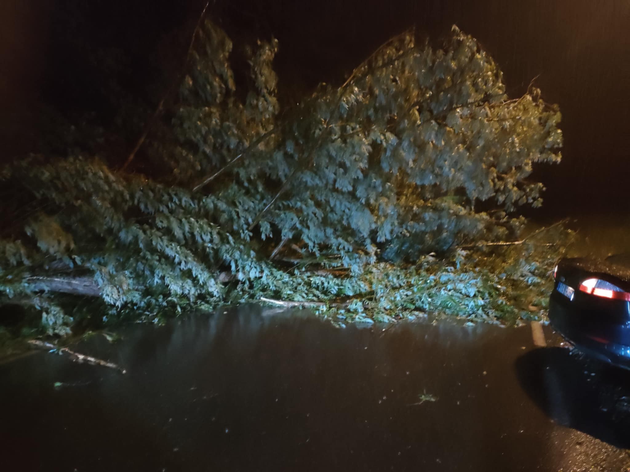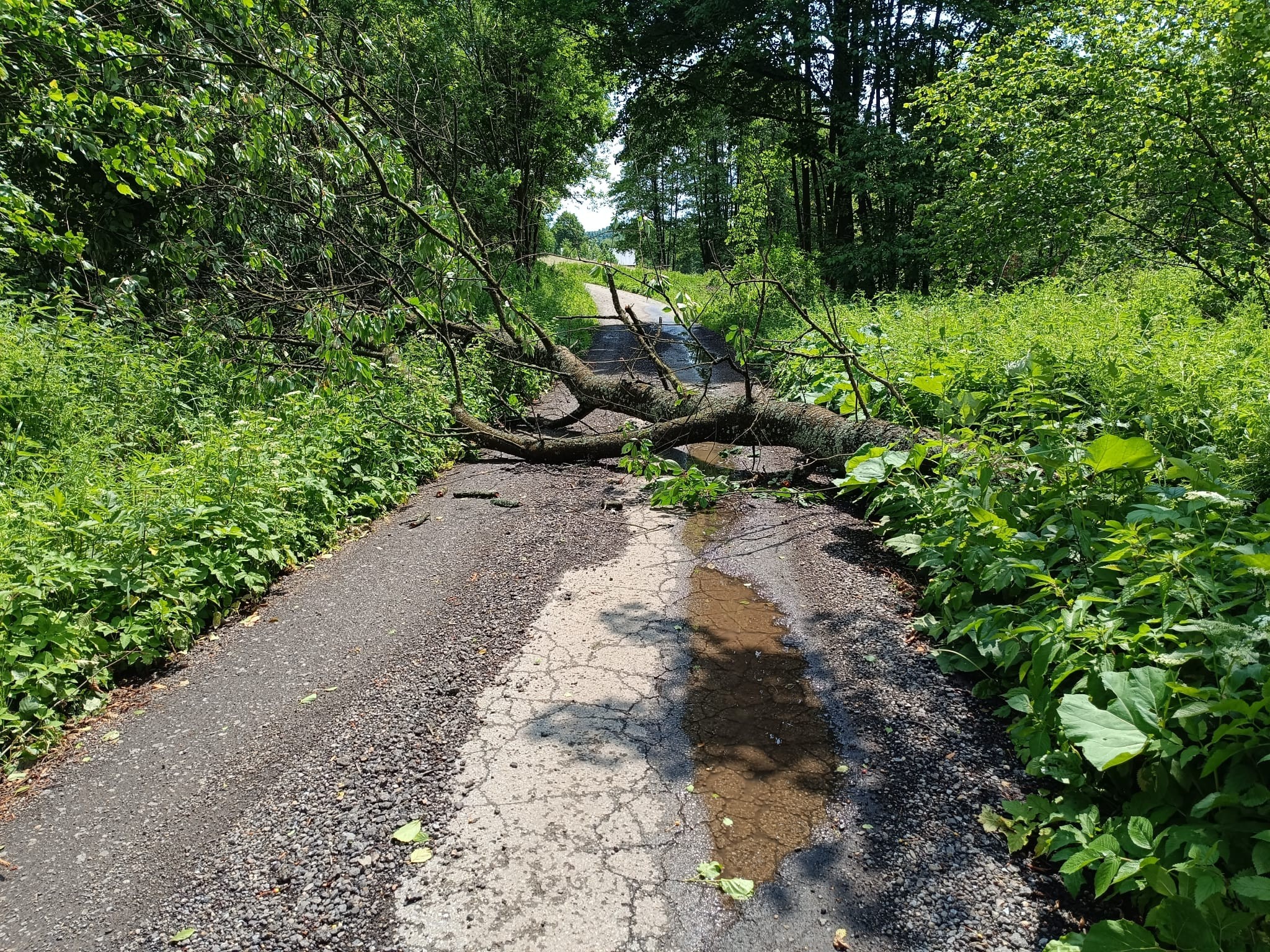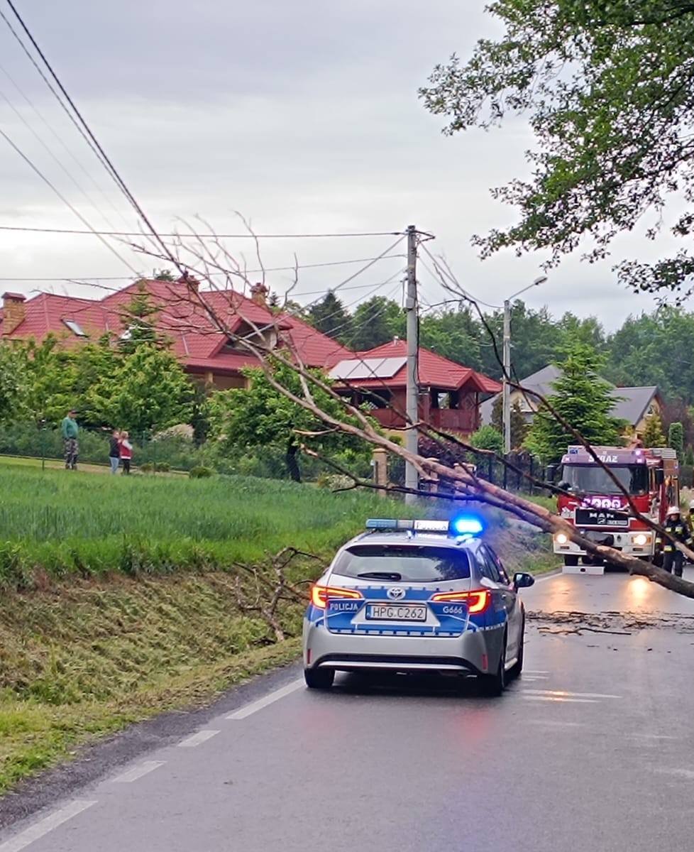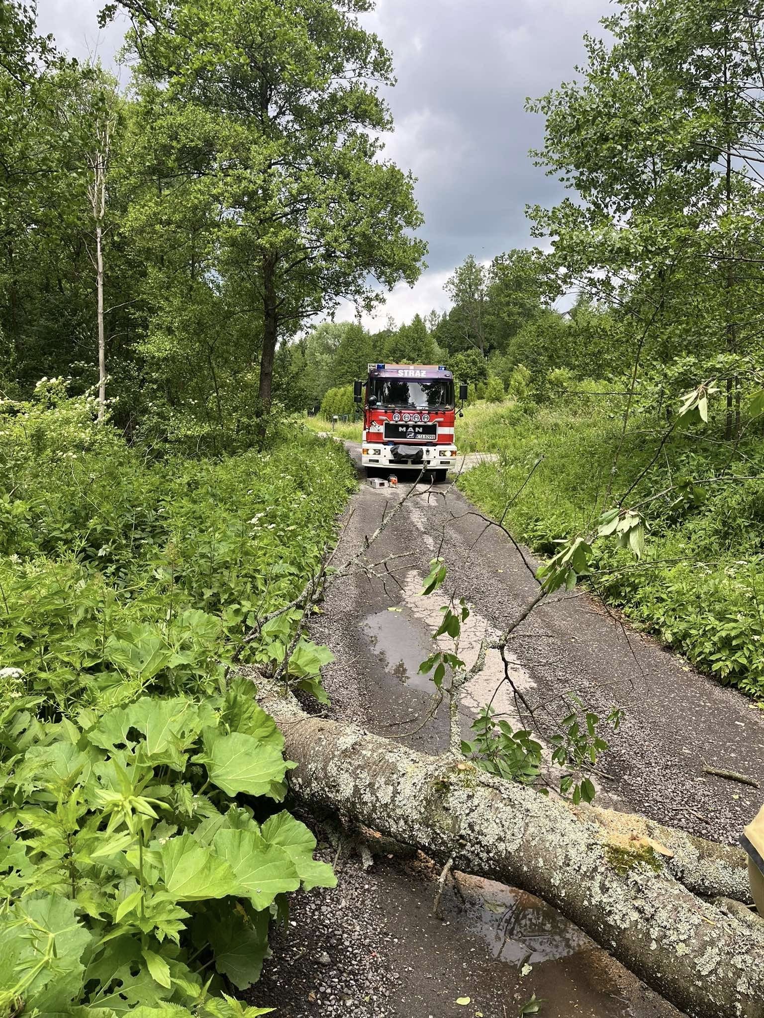 Zalasowa ul. Sportowa – Powalone drzewo na jezdnię.